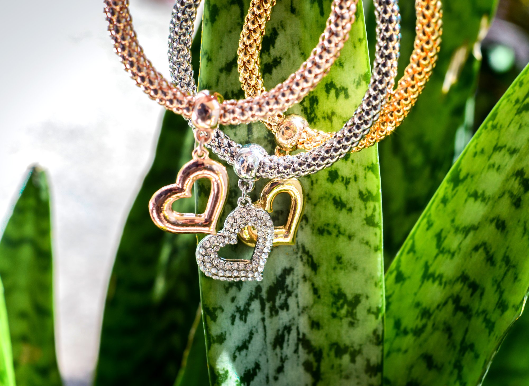 * Gold tone, Silver tone with rhinestones, and Rose gold tone